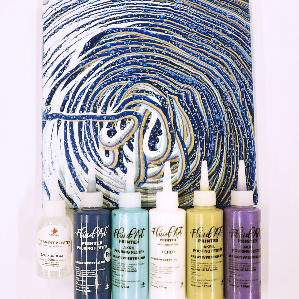 5 szín (5X120ml), amelyet a varázsaltos téli táj ihletett, és amelyek egymással harmóniában a kezdő kezek között is teret adnak a kreativitásnak! A szett tartalmaz egy 50ml-es szilikonolajat is és két MDF lapot.